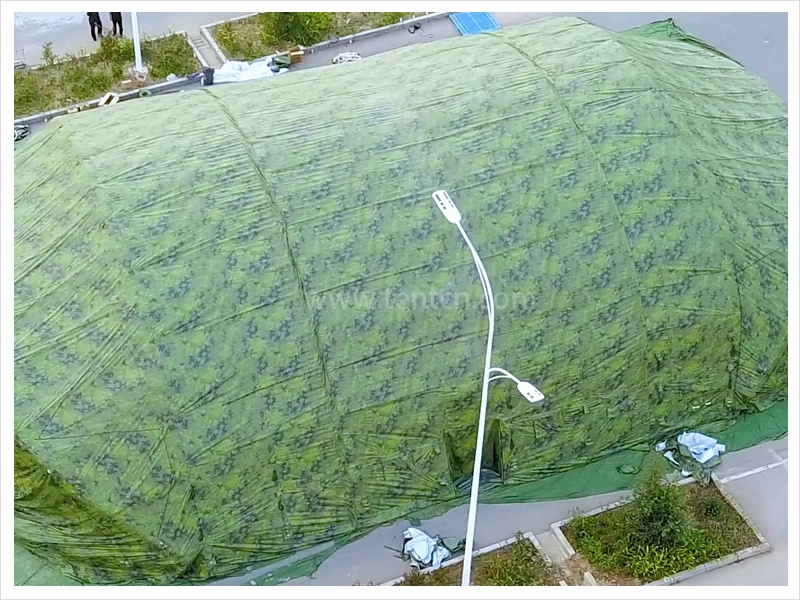 產(chǎn)品尺寸:         維修帳篷采用氣肋閉氣式拱形結(jié)構(gòu)。由篷布、氣肋和附件等組成。由2個端門模塊和1個主體模塊組成。端門采用“眼瞼式”結(jié)構(gòu)設(shè)計(jì),可打開或閉合,適合大型裝備如車輛等的進(jìn)出;帳篷主體呈半圓拱,內(nèi)部空間寬敞通暢,可滿足大型裝備的野外維修、保養(yǎng)等需求。